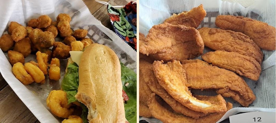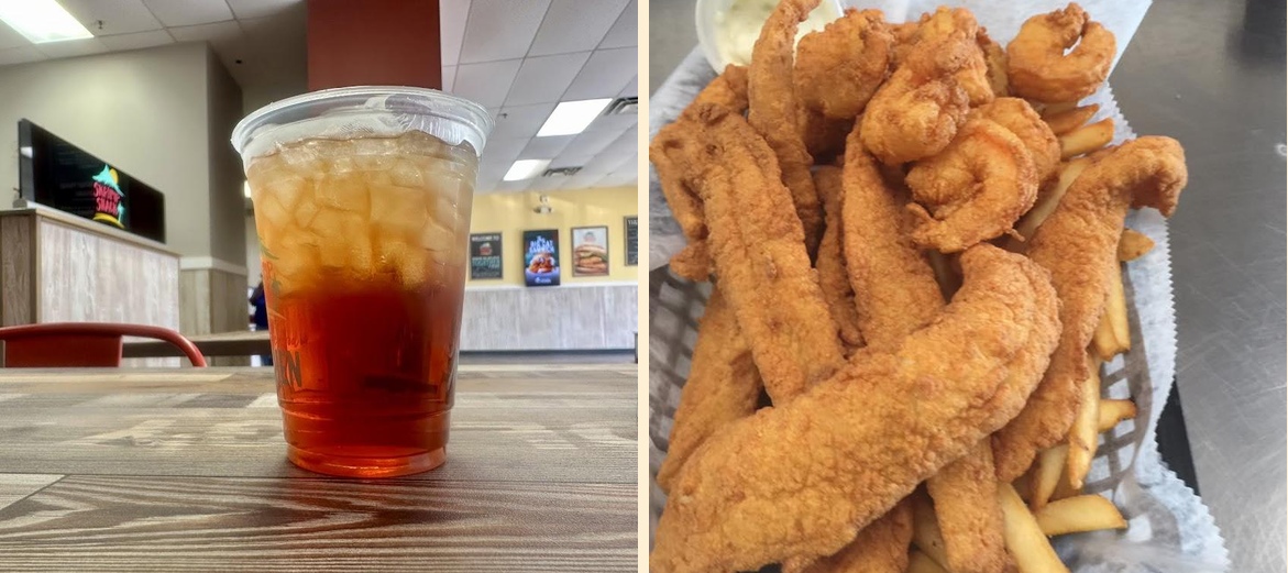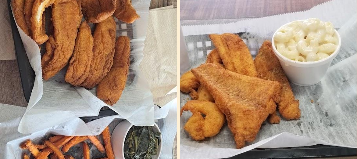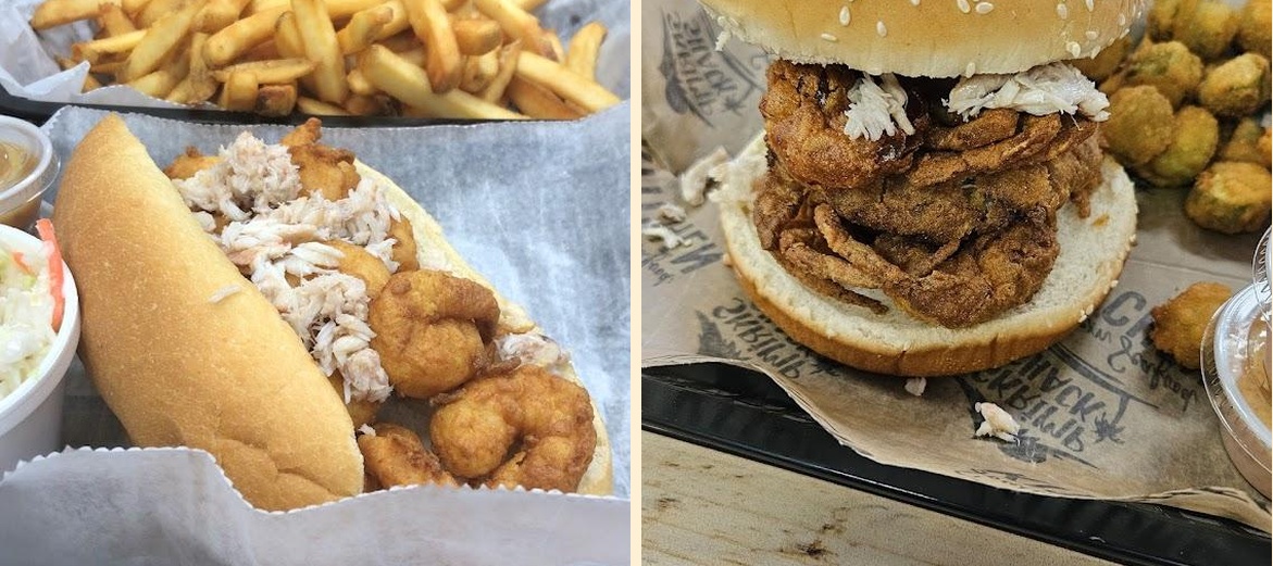 Skrimp Shack features a wide variety of seafood dishes. Popular options include fish and chips, fried shrimp, and hot chicken sandwiches. Don't miss their Po' Boys and tacos for a tasty twist.
